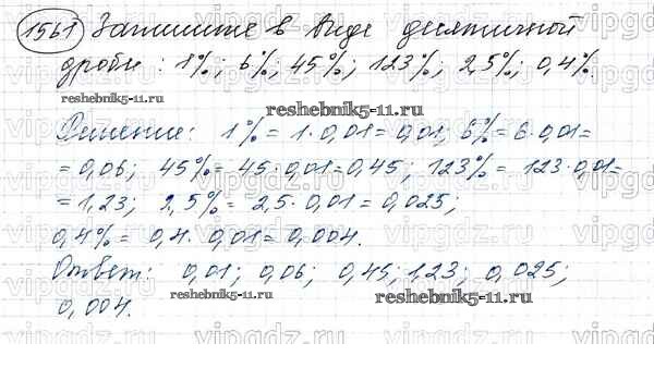 Готовая домашняя работа с ответами по Математике за 5 класс Виленкин, Жохов, Чесноков, Шварцбурд Учебник Мнемозина 2013 ФГОС - Глава 2. Дробные числа (упражнения с 850 по 1849) 1561