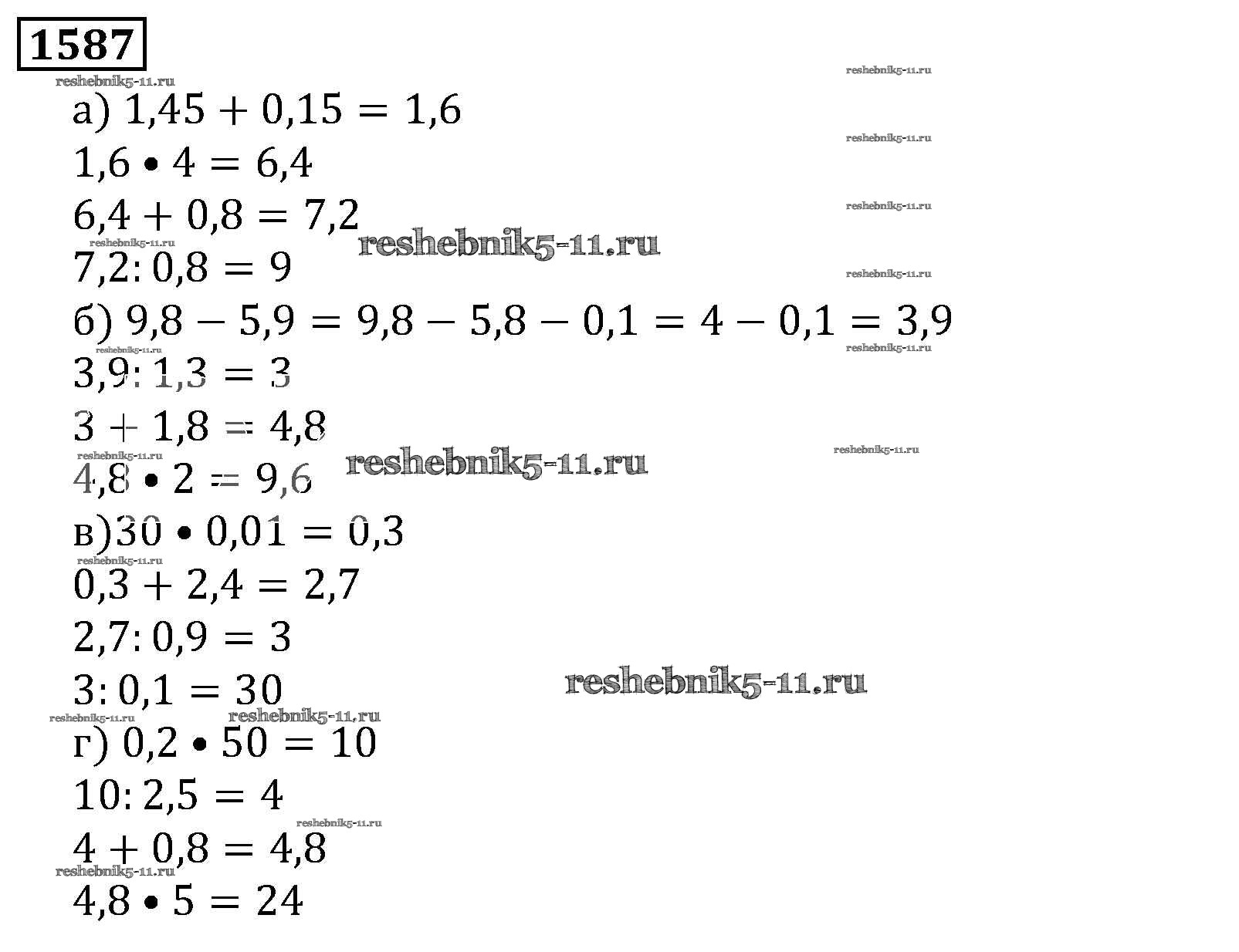 Готовая домашняя работа с ответами по Математике за 5 класс Виленкин, Жохов, Чесноков, Шварцбурд Учебник Мнемозина 2013 ФГОС - Глава 2. Дробные числа (упражнения с 850 по 1849) 1587