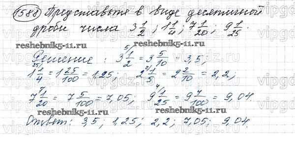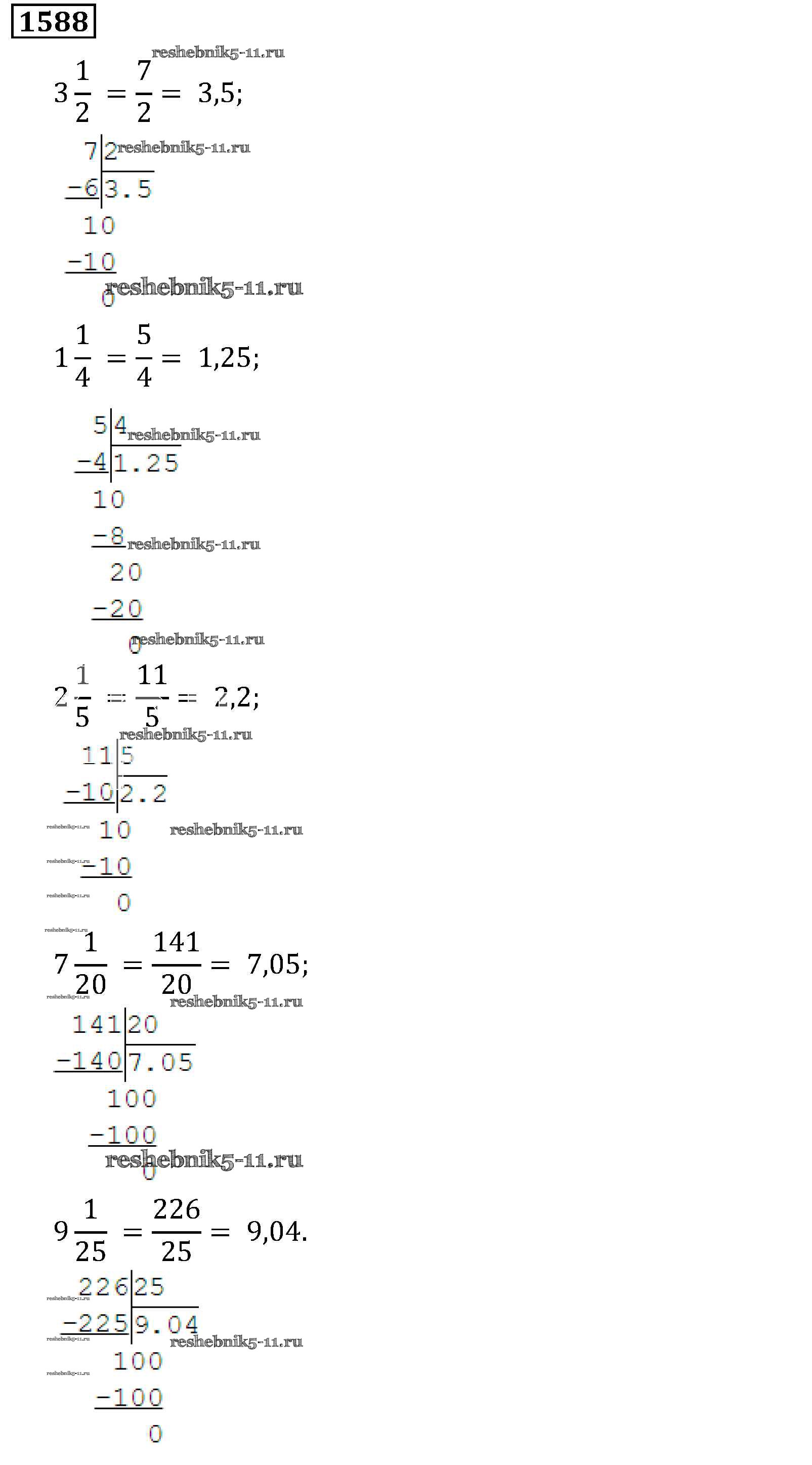 Готовая домашняя работа с ответами по Математике за 5 класс Виленкин, Жохов, Чесноков, Шварцбурд Учебник Мнемозина 2013 ФГОС - Глава 2. Дробные числа (упражнения с 850 по 1849) 1588