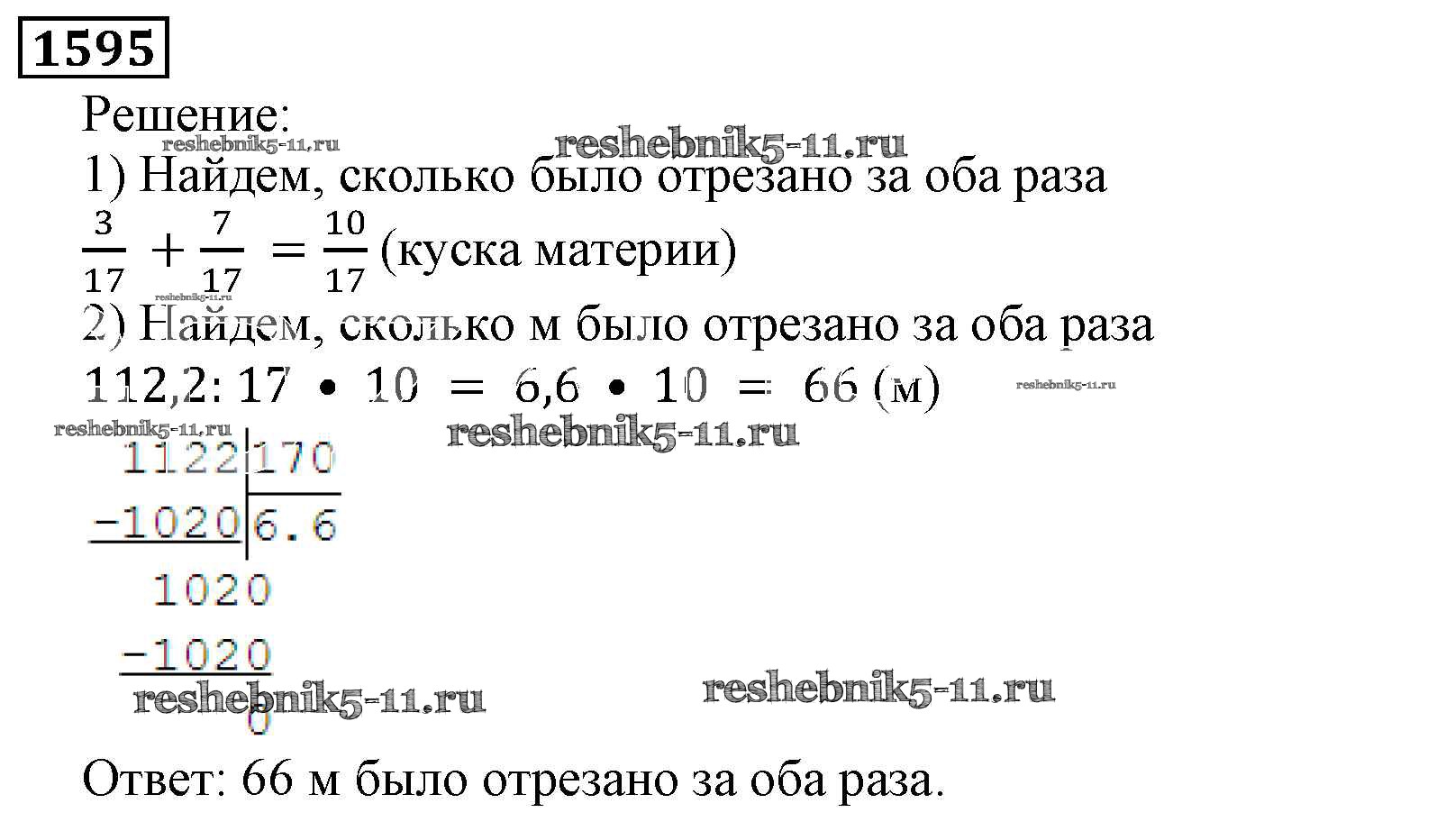 Готовая домашняя работа с ответами по Математике за 5 класс Виленкин, Жохов, Чесноков, Шварцбурд Учебник Мнемозина 2013 ФГОС - Глава 2. Дробные числа (упражнения с 850 по 1849) 1595