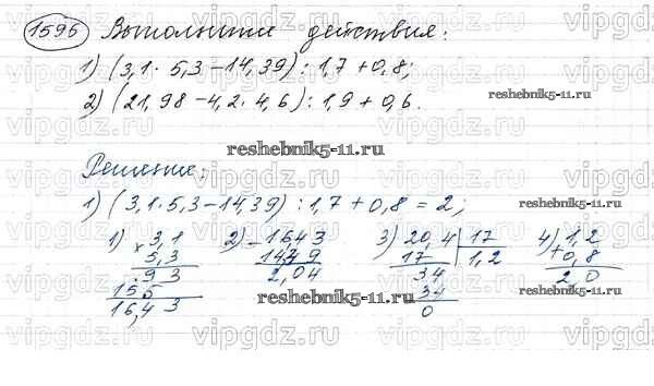 Готовая домашняя работа с ответами по Математике за 5 класс Виленкин, Жохов, Чесноков, Шварцбурд Учебник Мнемозина 2013 ФГОС - Глава 2. Дробные числа (упражнения с 850 по 1849) 1596