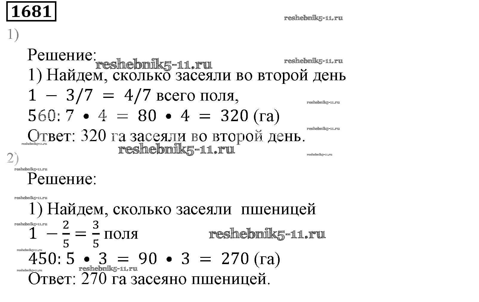 Готовая домашняя работа с ответами по Математике за 5 класс Виленкин, Жохов, Чесноков, Шварцбурд Учебник Мнемозина 2013 ФГОС - Глава 2. Дробные числа (упражнения с 850 по 1849) 1681