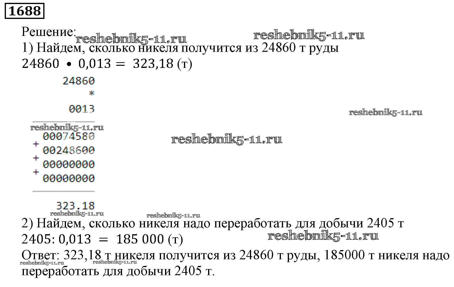 Готовая домашняя работа с ответами по Математике за 5 класс Виленкин, Жохов, Чесноков, Шварцбурд Учебник Мнемозина 2013 ФГОС - Глава 2. Дробные числа (упражнения с 850 по 1849) 1688