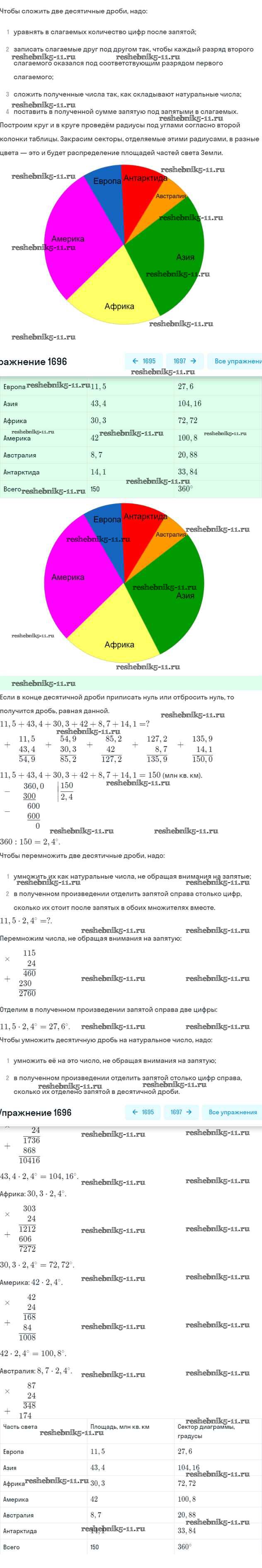 Готовая домашняя работа с ответами по Математике за 5 класс Виленкин, Жохов, Чесноков, Шварцбурд Учебник Мнемозина 2013 ФГОС - Глава 2. Дробные числа (упражнения с 850 по 1849) 1696