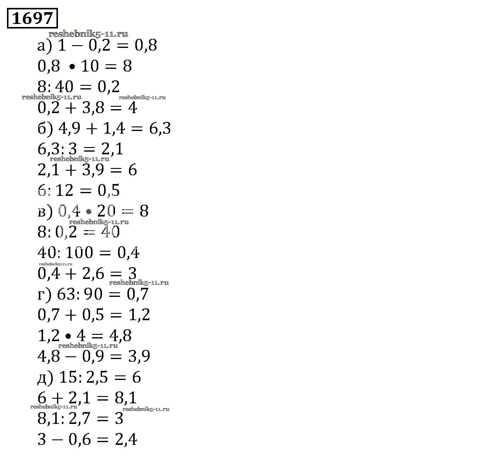 Готовая домашняя работа с ответами по Математике за 5 класс Виленкин, Жохов, Чесноков, Шварцбурд Учебник Мнемозина 2013 ФГОС - Глава 2. Дробные числа (упражнения с 850 по 1849) 1697