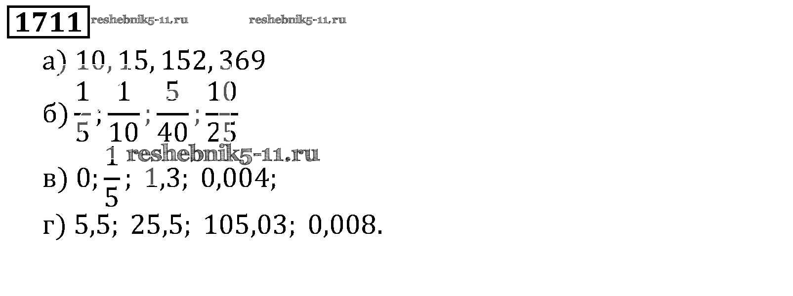 Готовая домашняя работа с ответами по Математике за 5 класс Виленкин, Жохов, Чесноков, Шварцбурд Учебник Мнемозина 2013 ФГОС - Глава 2. Дробные числа (упражнения с 850 по 1849) 1711