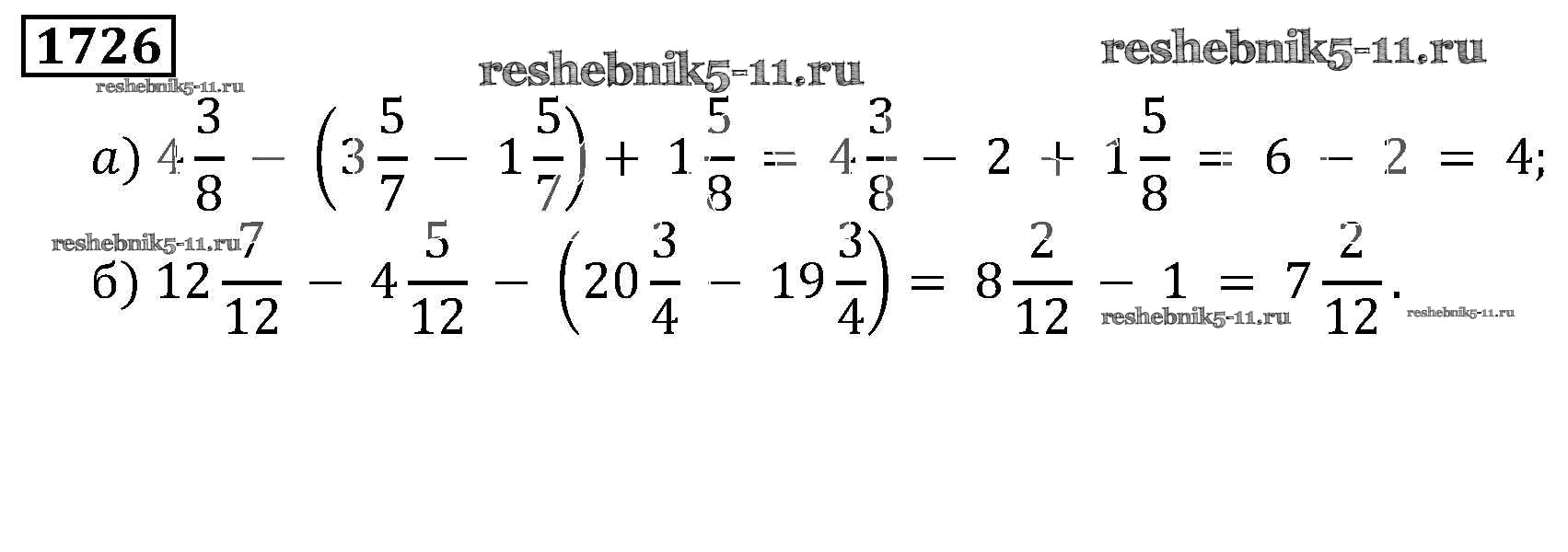 Готовая домашняя работа с ответами по Математике за 5 класс Виленкин, Жохов, Чесноков, Шварцбурд Учебник Мнемозина 2013 ФГОС - Глава 2. Дробные числа (упражнения с 850 по 1849) 1726