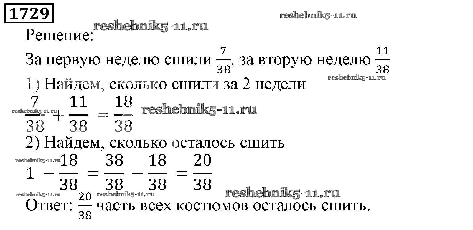 Готовая домашняя работа с ответами по Математике за 5 класс Виленкин, Жохов, Чесноков, Шварцбурд Учебник Мнемозина 2013 ФГОС - Глава 2. Дробные числа (упражнения с 850 по 1849) 1729