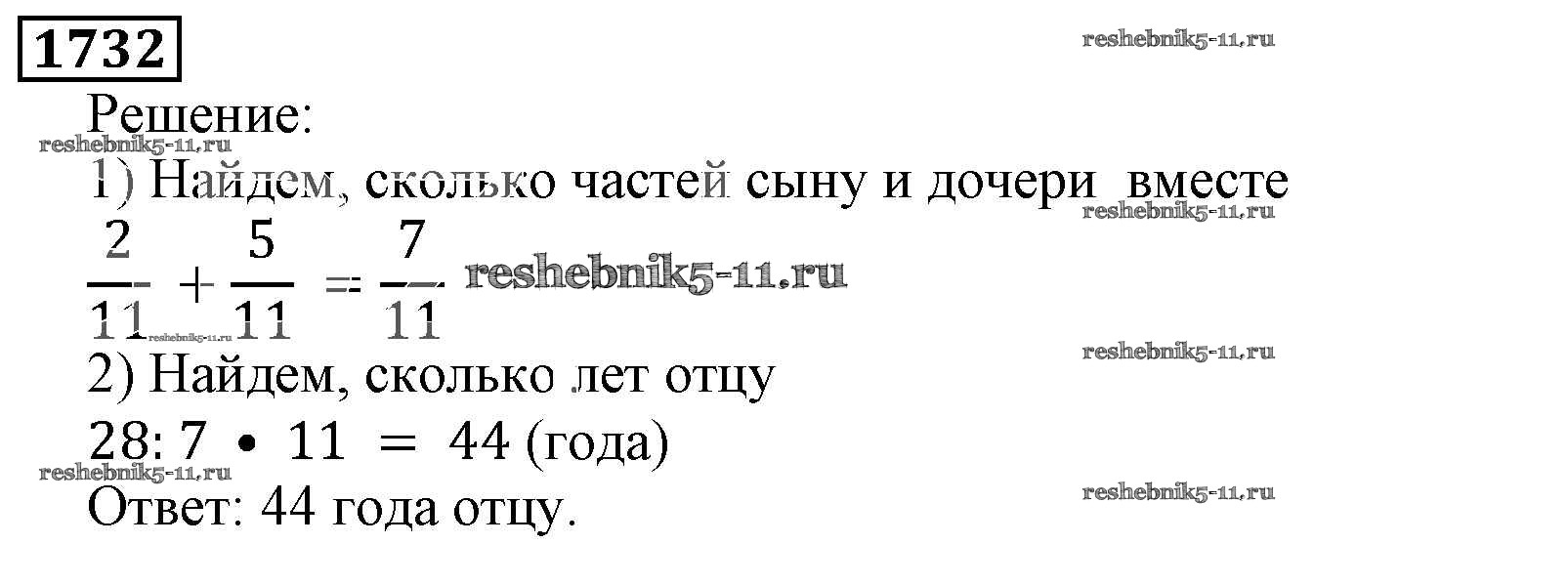 Готовая домашняя работа с ответами по Математике за 5 класс Виленкин, Жохов, Чесноков, Шварцбурд Учебник Мнемозина 2013 ФГОС - Глава 2. Дробные числа (упражнения с 850 по 1849) 1732
