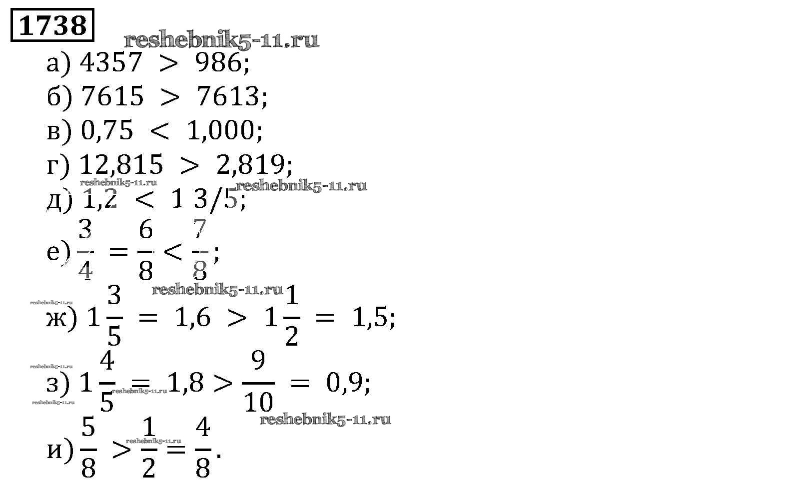Готовая домашняя работа с ответами по Математике за 5 класс Виленкин, Жохов, Чесноков, Шварцбурд Учебник Мнемозина 2013 ФГОС - Глава 2. Дробные числа (упражнения с 850 по 1849) 1738