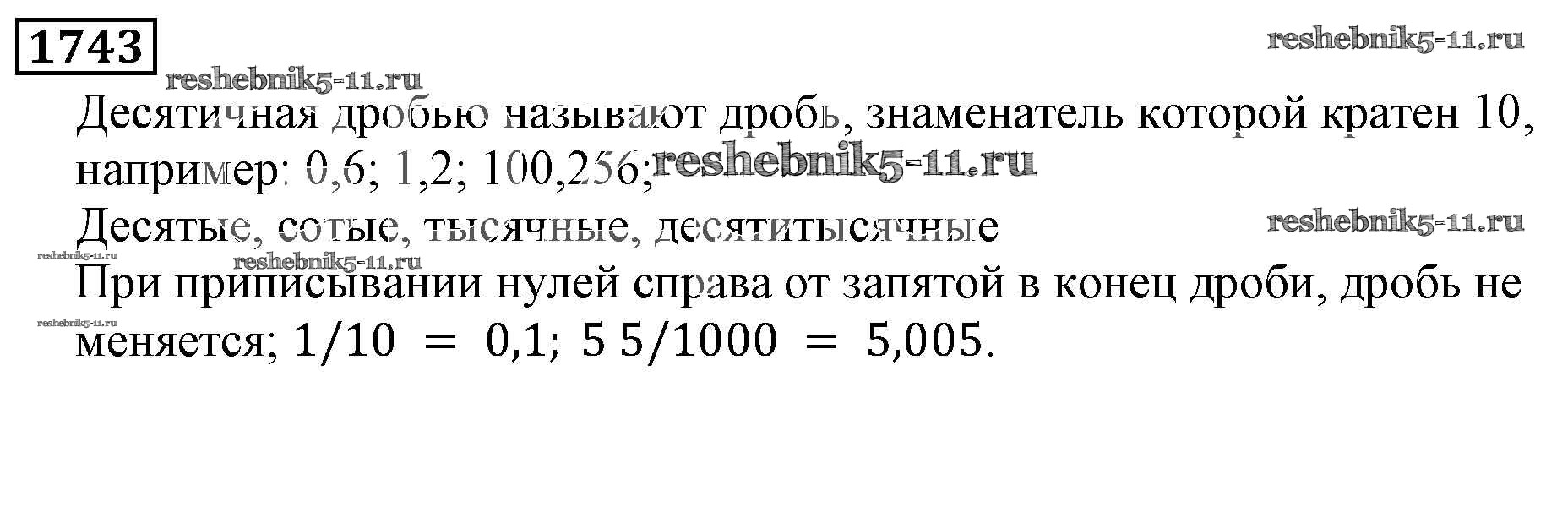 Готовая домашняя работа с ответами по Математике за 5 класс Виленкин, Жохов, Чесноков, Шварцбурд Учебник Мнемозина 2013 ФГОС - Глава 2. Дробные числа (упражнения с 850 по 1849) 1743