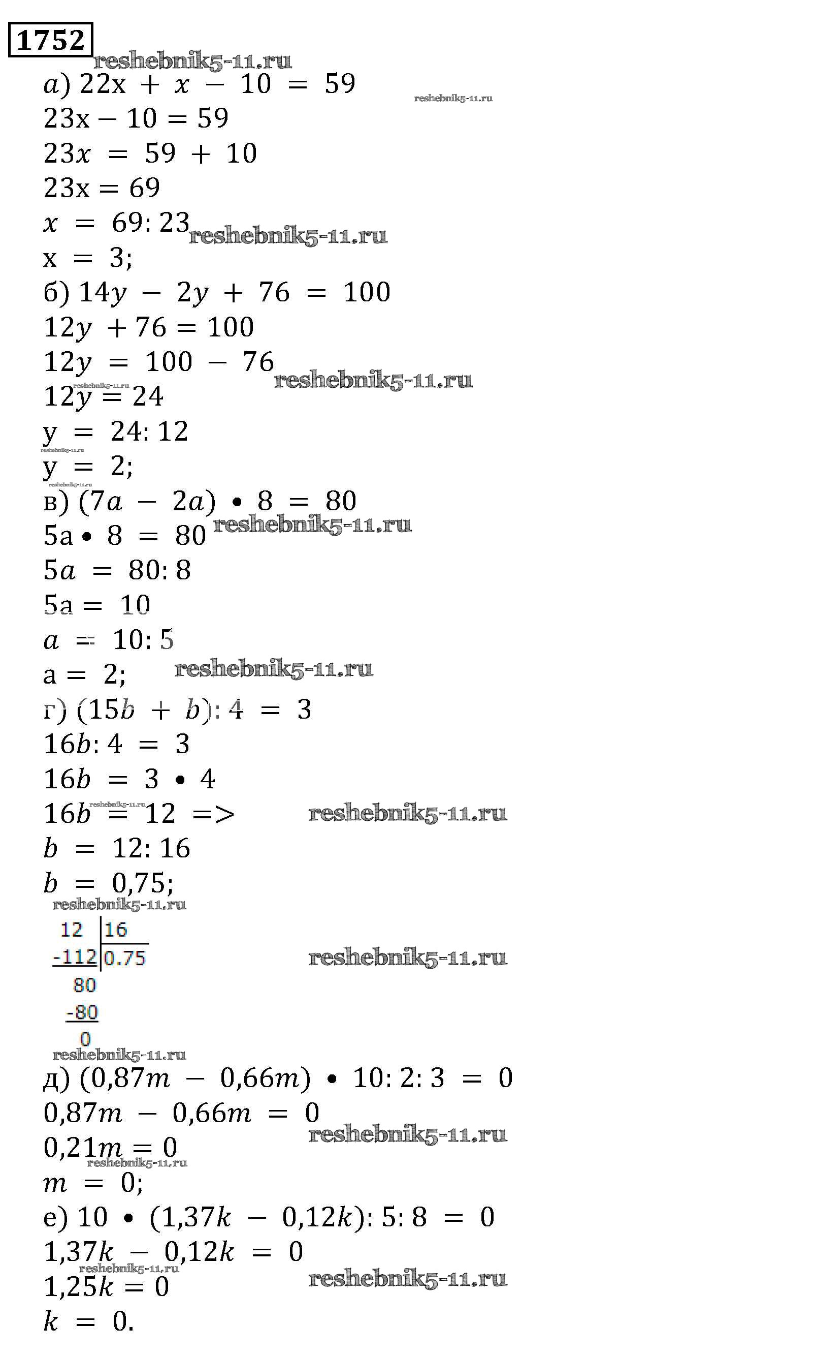 Готовая домашняя работа с ответами по Математике за 5 класс Виленкин, Жохов, Чесноков, Шварцбурд Учебник Мнемозина 2013 ФГОС - Глава 2. Дробные числа (упражнения с 850 по 1849) 1752