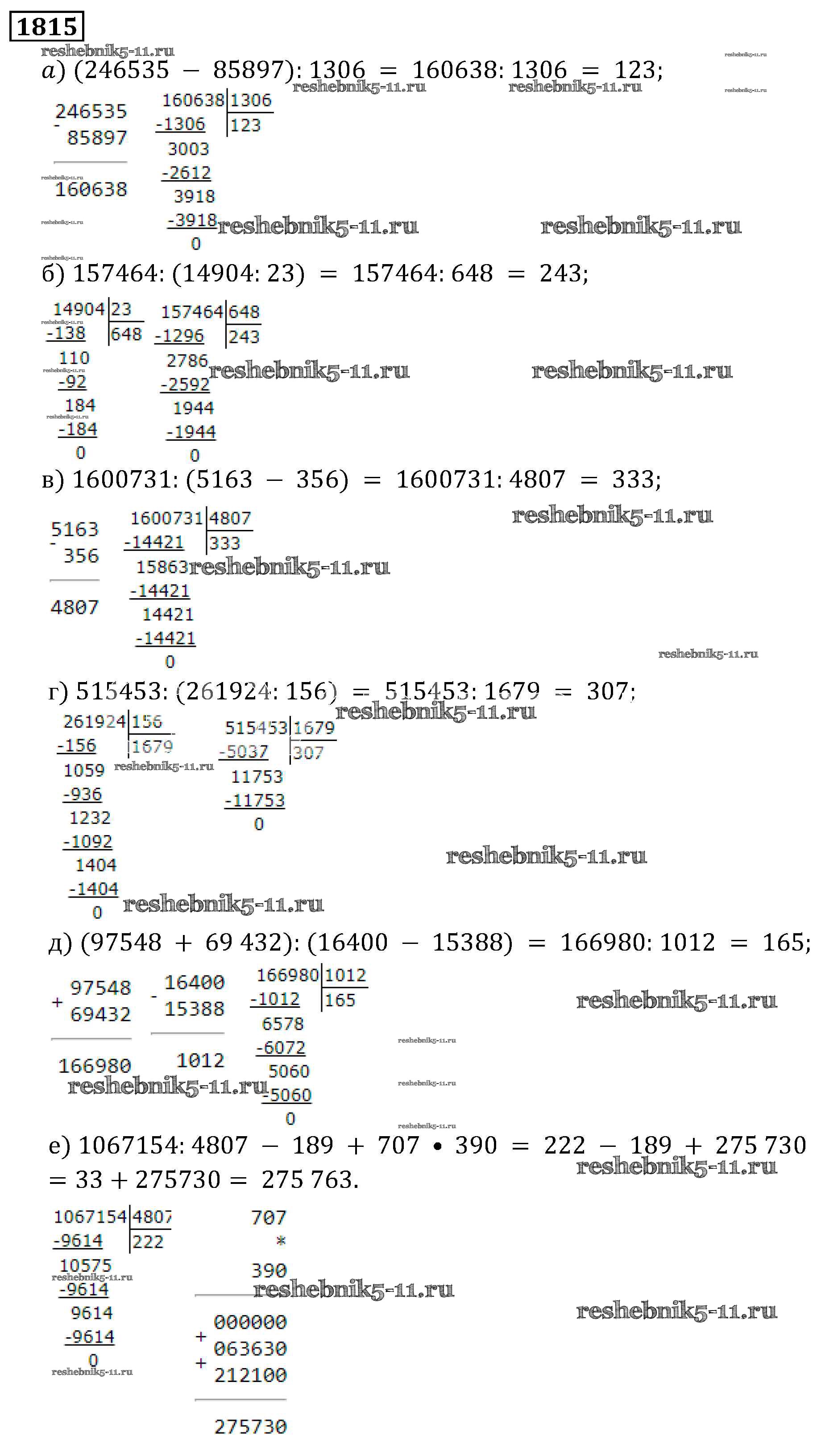 Готовая домашняя работа с ответами по Математике за 5 класс Виленкин, Жохов, Чесноков, Шварцбурд Учебник Мнемозина 2013 ФГОС - Глава 2. Дробные числа (упражнения с 850 по 1849) 1815