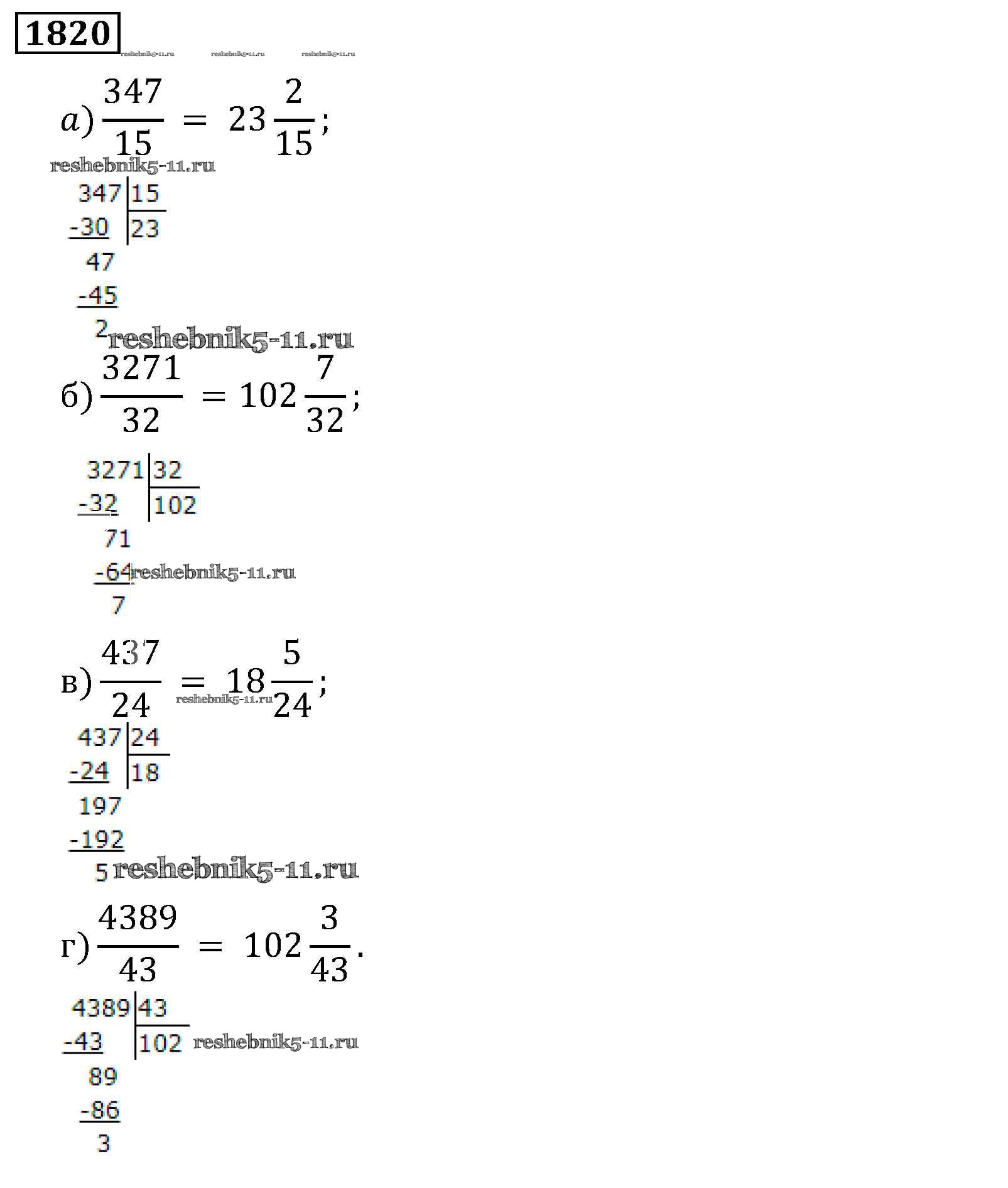 Готовая домашняя работа с ответами по Математике за 5 класс Виленкин, Жохов, Чесноков, Шварцбурд Учебник Мнемозина 2013 ФГОС - Глава 2. Дробные числа (упражнения с 850 по 1849) 1820