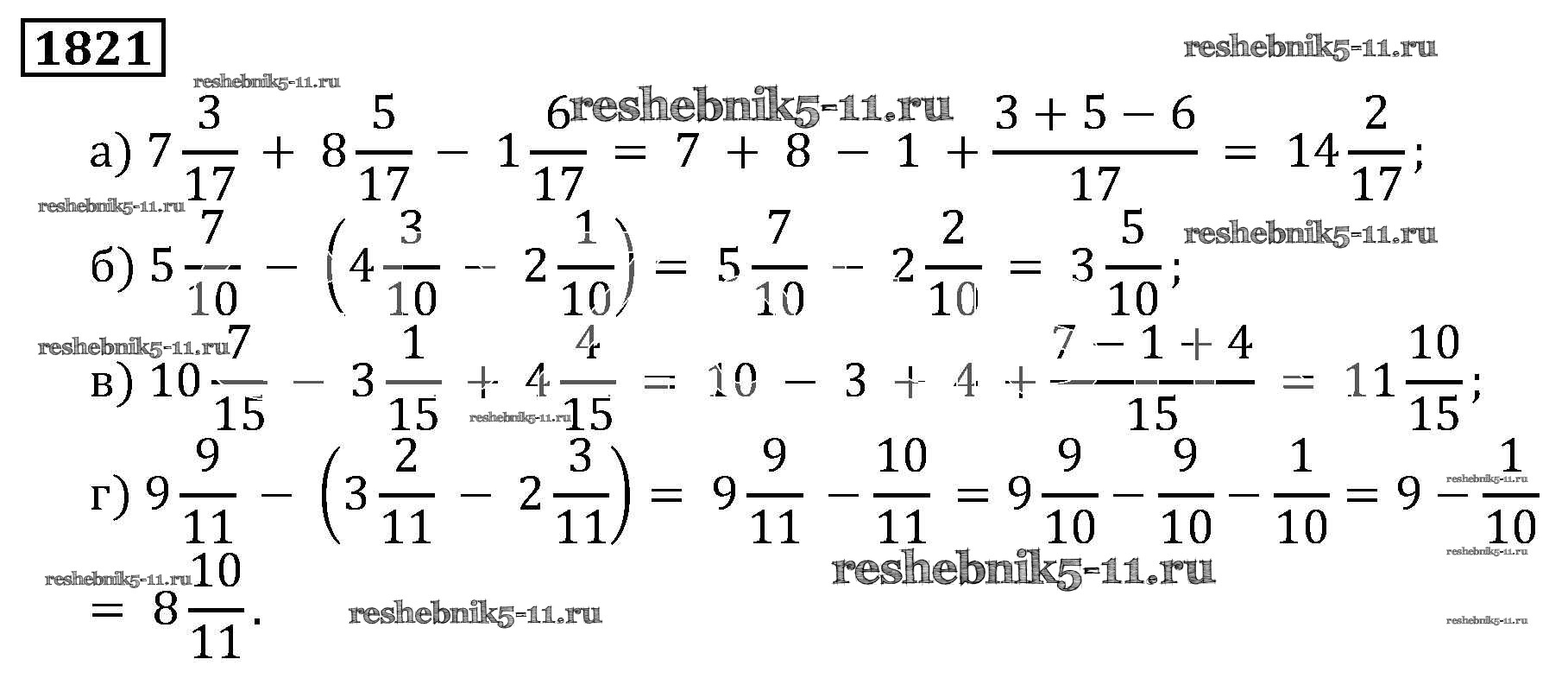 Готовая домашняя работа с ответами по Математике за 5 класс Виленкин, Жохов, Чесноков, Шварцбурд Учебник Мнемозина 2013 ФГОС - Глава 2. Дробные числа (упражнения с 850 по 1849) 1821