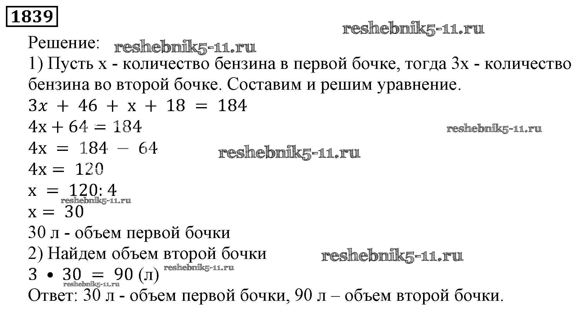 Готовая домашняя работа с ответами по Математике за 5 класс Виленкин, Жохов, Чесноков, Шварцбурд Учебник Мнемозина 2013 ФГОС - Глава 2. Дробные числа (упражнения с 850 по 1849) 1839