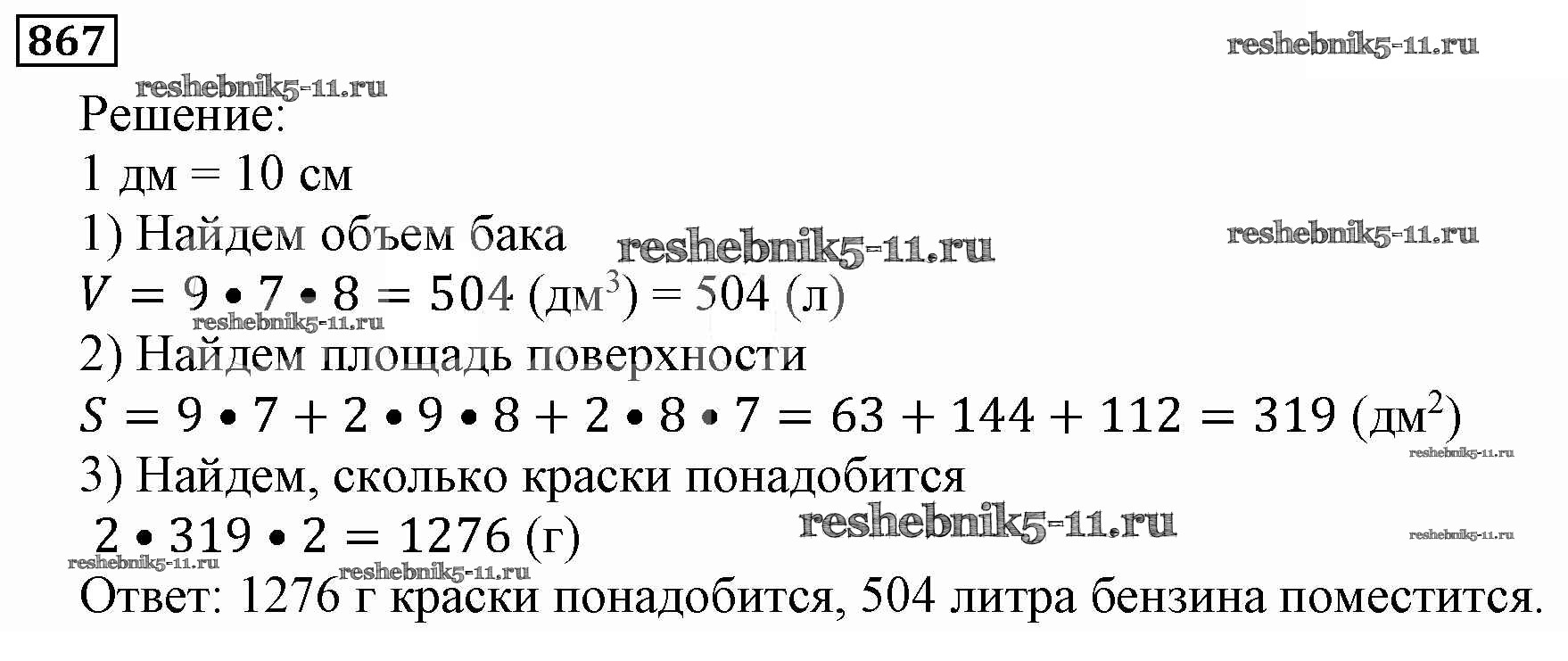 Готовая домашняя работа с ответами по Математике за 5 класс Виленкин, Жохов, Чесноков, Шварцбурд Учебник Мнемозина 2013 ФГОС - Глава 2. Дробные числа (упражнения с 850 по 1849) 867
