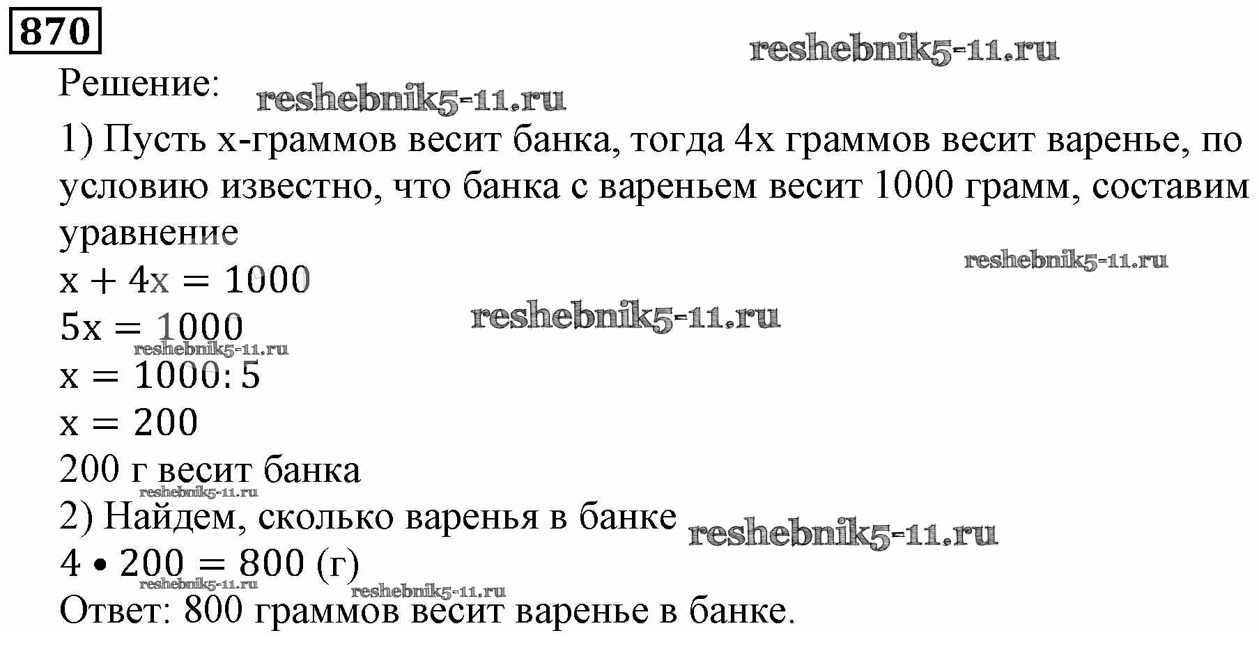 Готовая домашняя работа с ответами по Математике за 5 класс Виленкин, Жохов, Чесноков, Шварцбурд Учебник Мнемозина 2013 ФГОС - Глава 2. Дробные числа (упражнения с 850 по 1849) 870