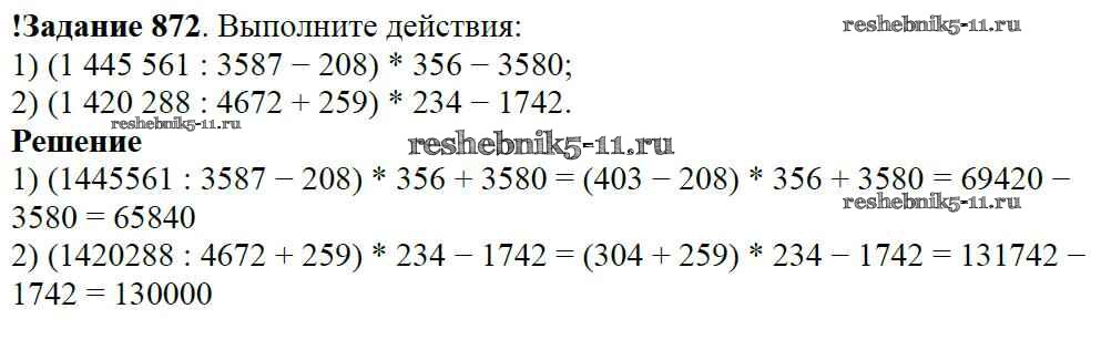 Готовая домашняя работа с ответами по Математике за 5 класс Виленкин, Жохов, Чесноков, Шварцбурд Учебник Мнемозина 2013 ФГОС - Глава 2. Дробные числа (упражнения с 850 по 1849) 872