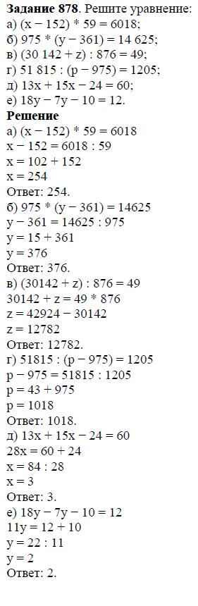 Готовая домашняя работа с ответами по Математике за 5 класс Виленкин, Жохов, Чесноков, Шварцбурд Учебник Мнемозина 2013 ФГОС - Глава 2. Дробные числа (упражнения с 850 по 1849) 878
