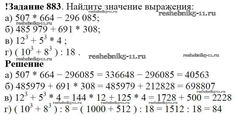 Готовая домашняя работа с ответами по Математике за 5 класс Виленкин, Жохов, Чесноков, Шварцбурд Учебник Мнемозина 2013 ФГОС - Глава 2. Дробные числа (упражнения с 850 по 1849) 883