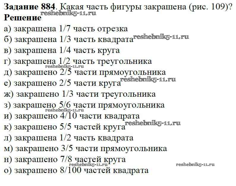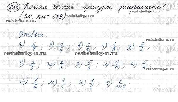 Готовая домашняя работа с ответами по Математике за 5 класс Виленкин, Жохов, Чесноков, Шварцбурд Учебник Мнемозина 2013 ФГОС - Глава 2. Дробные числа (упражнения с 850 по 1849) 884