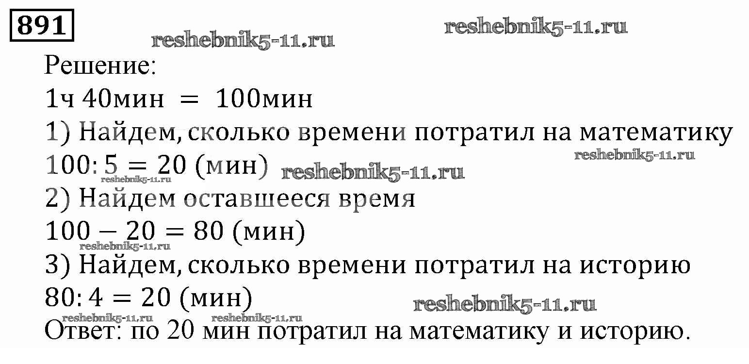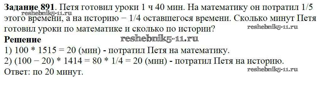 Готовая домашняя работа с ответами по Математике за 5 класс Виленкин, Жохов, Чесноков, Шварцбурд Учебник Мнемозина 2013 ФГОС - Глава 2. Дробные числа (упражнения с 850 по 1849) 891