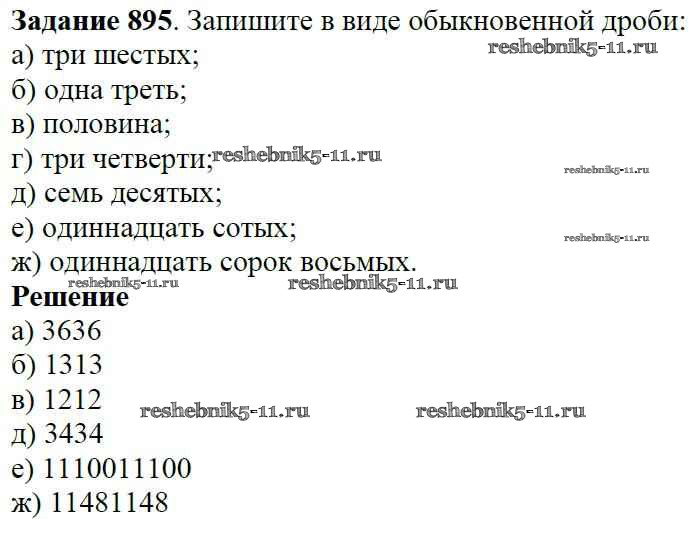 Готовая домашняя работа с ответами по Математике за 5 класс Виленкин, Жохов, Чесноков, Шварцбурд Учебник Мнемозина 2013 ФГОС - Глава 2. Дробные числа (упражнения с 850 по 1849) 895