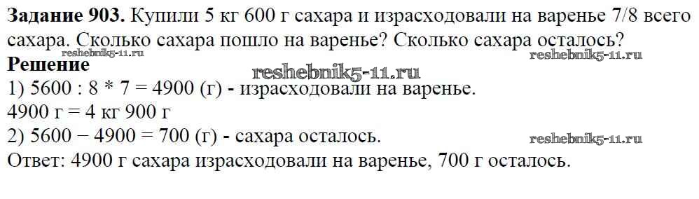 Готовая домашняя работа с ответами по Математике за 5 класс Виленкин, Жохов, Чесноков, Шварцбурд Учебник Мнемозина 2013 ФГОС - Глава 2. Дробные числа (упражнения с 850 по 1849) 903