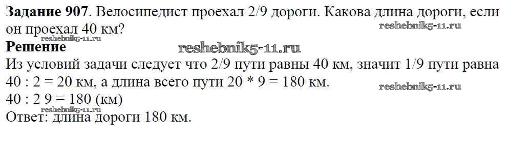 Готовая домашняя работа с ответами по Математике за 5 класс Виленкин, Жохов, Чесноков, Шварцбурд Учебник Мнемозина 2013 ФГОС - Глава 2. Дробные числа (упражнения с 850 по 1849) 907