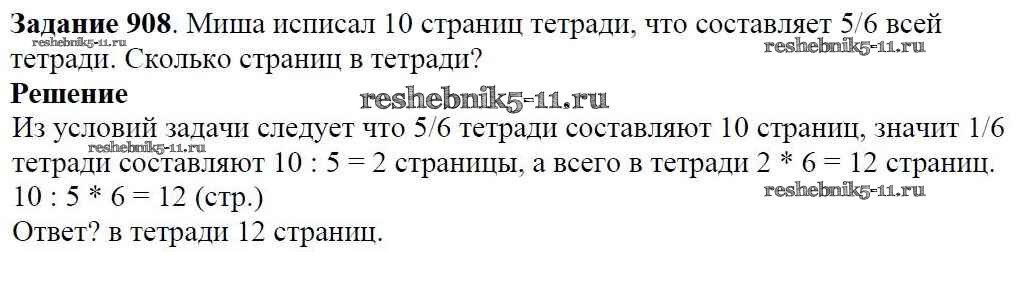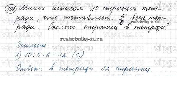 Готовая домашняя работа с ответами по Математике за 5 класс Виленкин, Жохов, Чесноков, Шварцбурд Учебник Мнемозина 2013 ФГОС - Глава 2. Дробные числа (упражнения с 850 по 1849) 908