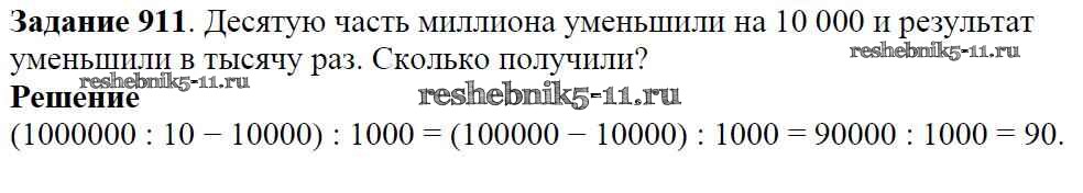 Готовая домашняя работа с ответами по Математике за 5 класс Виленкин, Жохов, Чесноков, Шварцбурд Учебник Мнемозина 2013 ФГОС - Глава 2. Дробные числа (упражнения с 850 по 1849) 911