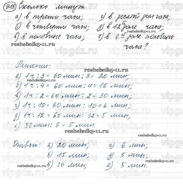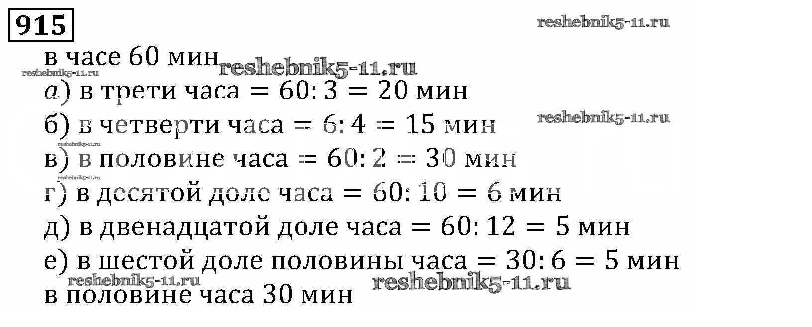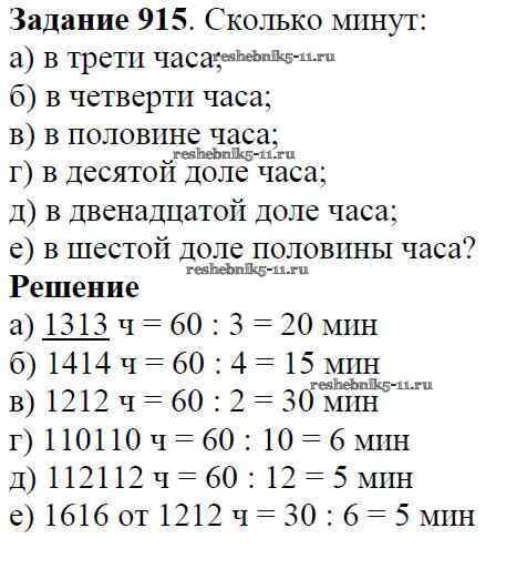 Готовая домашняя работа с ответами по Математике за 5 класс Виленкин, Жохов, Чесноков, Шварцбурд Учебник Мнемозина 2013 ФГОС - Глава 2. Дробные числа (упражнения с 850 по 1849) 915