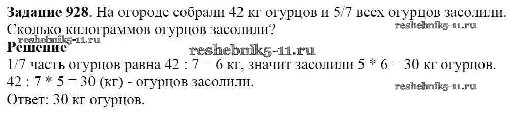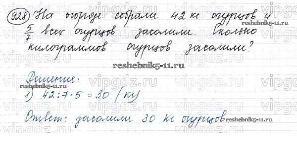 Готовая домашняя работа с ответами по Математике за 5 класс Виленкин, Жохов, Чесноков, Шварцбурд Учебник Мнемозина 2013 ФГОС - Глава 2. Дробные числа (упражнения с 850 по 1849) 928
