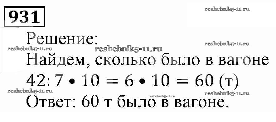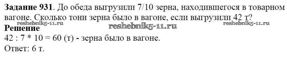 Готовая домашняя работа с ответами по Математике за 5 класс Виленкин, Жохов, Чесноков, Шварцбурд Учебник Мнемозина 2013 ФГОС - Глава 2. Дробные числа (упражнения с 850 по 1849) 931