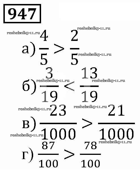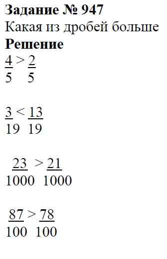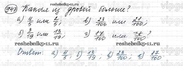 Готовая домашняя работа с ответами по Математике за 5 класс Виленкин, Жохов, Чесноков, Шварцбурд Учебник Мнемозина 2013 ФГОС - Глава 2. Дробные числа (упражнения с 850 по 1849) 947