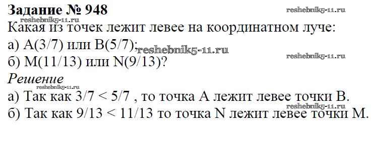 Готовая домашняя работа с ответами по Математике за 5 класс Виленкин, Жохов, Чесноков, Шварцбурд Учебник Мнемозина 2013 ФГОС - Глава 2. Дробные числа (упражнения с 850 по 1849) 948