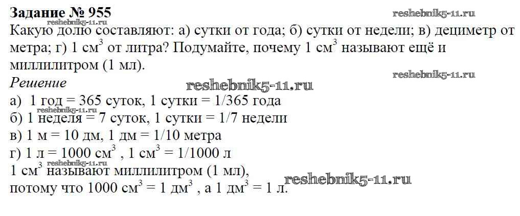 Готовая домашняя работа с ответами по Математике за 5 класс Виленкин, Жохов, Чесноков, Шварцбурд Учебник Мнемозина 2013 ФГОС - Глава 2. Дробные числа (упражнения с 850 по 1849) 955