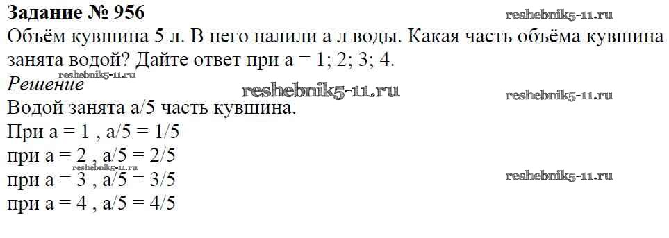 Готовая домашняя работа с ответами по Математике за 5 класс Виленкин, Жохов, Чесноков, Шварцбурд Учебник Мнемозина 2013 ФГОС - Глава 2. Дробные числа (упражнения с 850 по 1849) 956