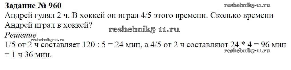 Готовая домашняя работа с ответами по Математике за 5 класс Виленкин, Жохов, Чесноков, Шварцбурд Учебник Мнемозина 2013 ФГОС - Глава 2. Дробные числа (упражнения с 850 по 1849) 960