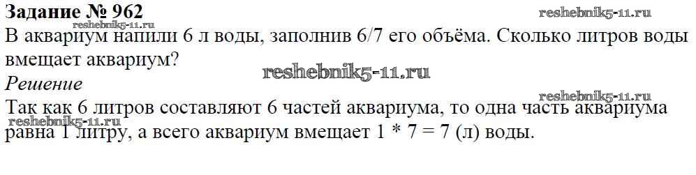 Готовая домашняя работа с ответами по Математике за 5 класс Виленкин, Жохов, Чесноков, Шварцбурд Учебник Мнемозина 2013 ФГОС - Глава 2. Дробные числа (упражнения с 850 по 1849) 962
