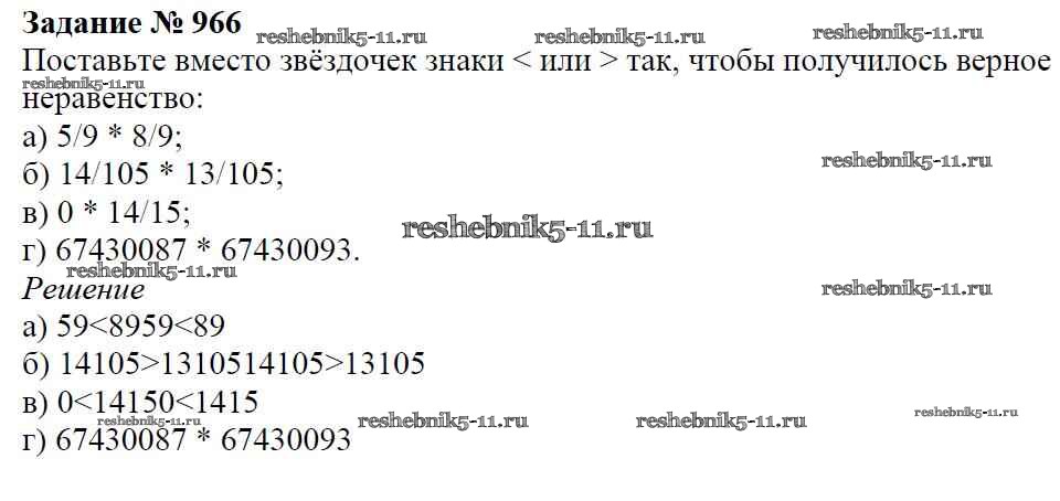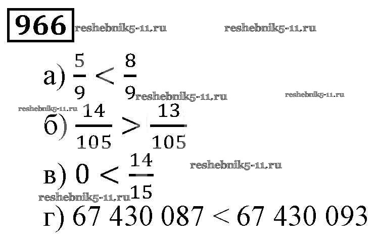 Готовая домашняя работа с ответами по Математике за 5 класс Виленкин, Жохов, Чесноков, Шварцбурд Учебник Мнемозина 2013 ФГОС - Глава 2. Дробные числа (упражнения с 850 по 1849) 966
