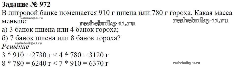 Готовая домашняя работа с ответами по Математике за 5 класс Виленкин, Жохов, Чесноков, Шварцбурд Учебник Мнемозина 2013 ФГОС - Глава 2. Дробные числа (упражнения с 850 по 1849) 972