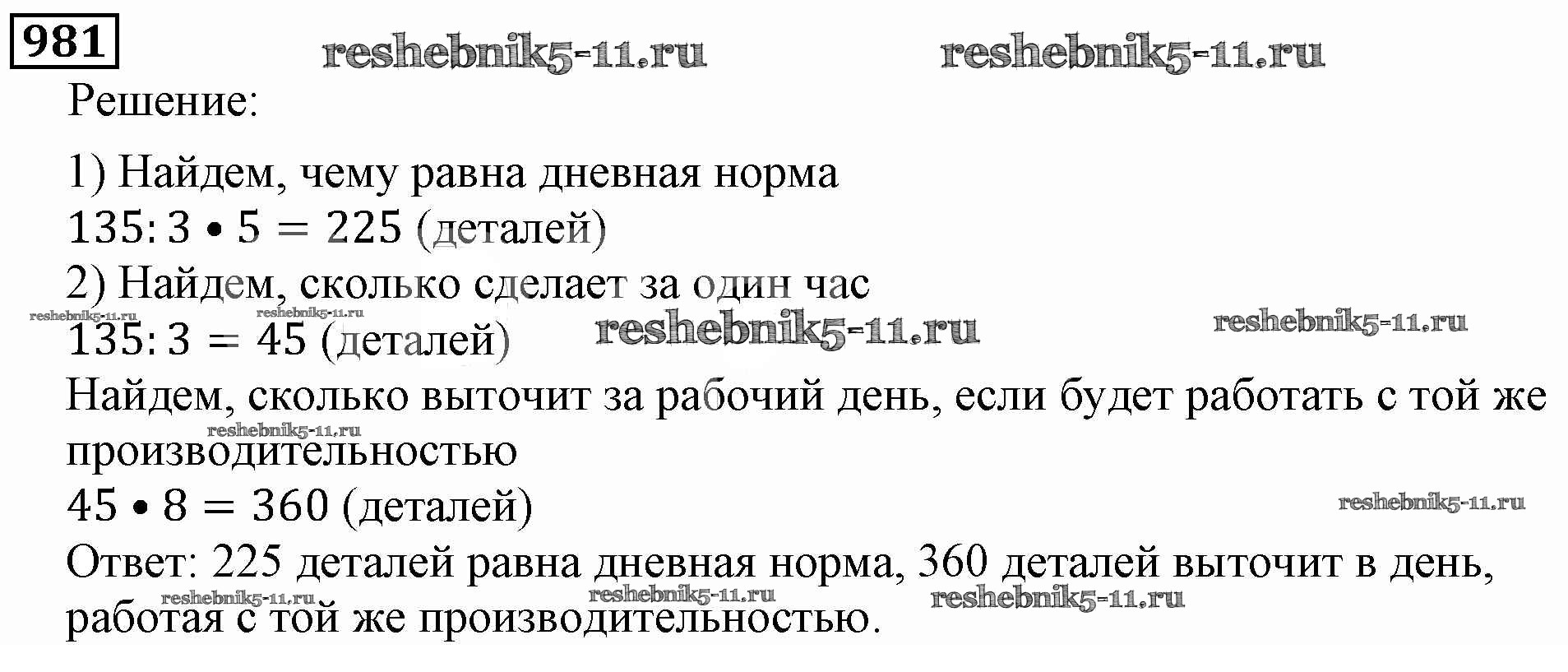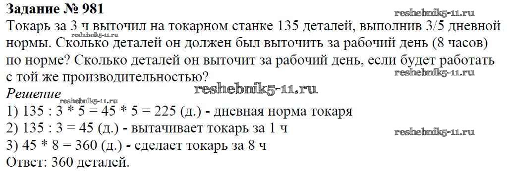 Готовая домашняя работа с ответами по Математике за 5 класс Виленкин, Жохов, Чесноков, Шварцбурд Учебник Мнемозина 2013 ФГОС - Глава 2. Дробные числа (упражнения с 850 по 1849) 981