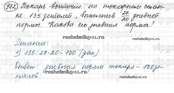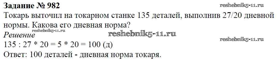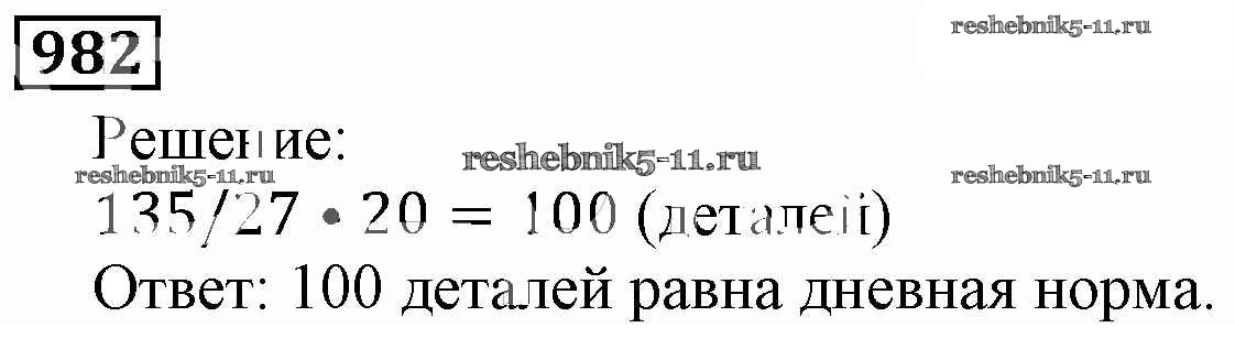 Готовая домашняя работа с ответами по Математике за 5 класс Виленкин, Жохов, Чесноков, Шварцбурд Учебник Мнемозина 2013 ФГОС - Глава 2. Дробные числа (упражнения с 850 по 1849) 982