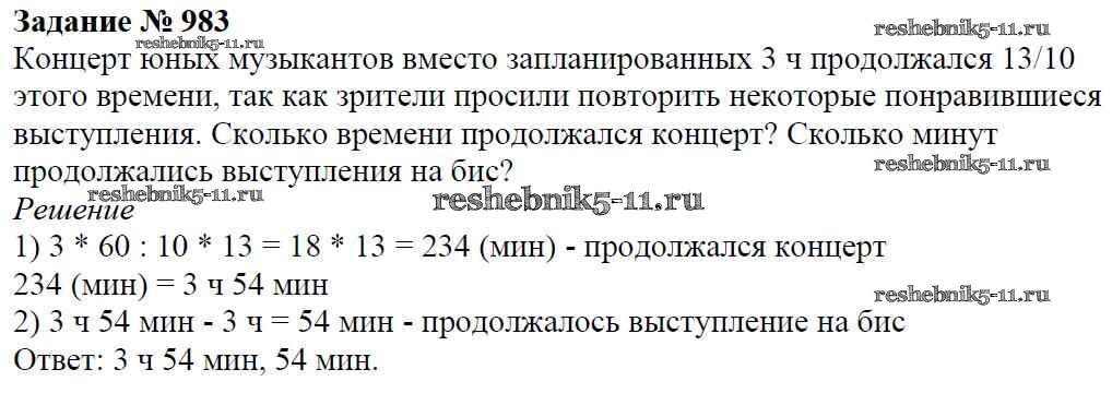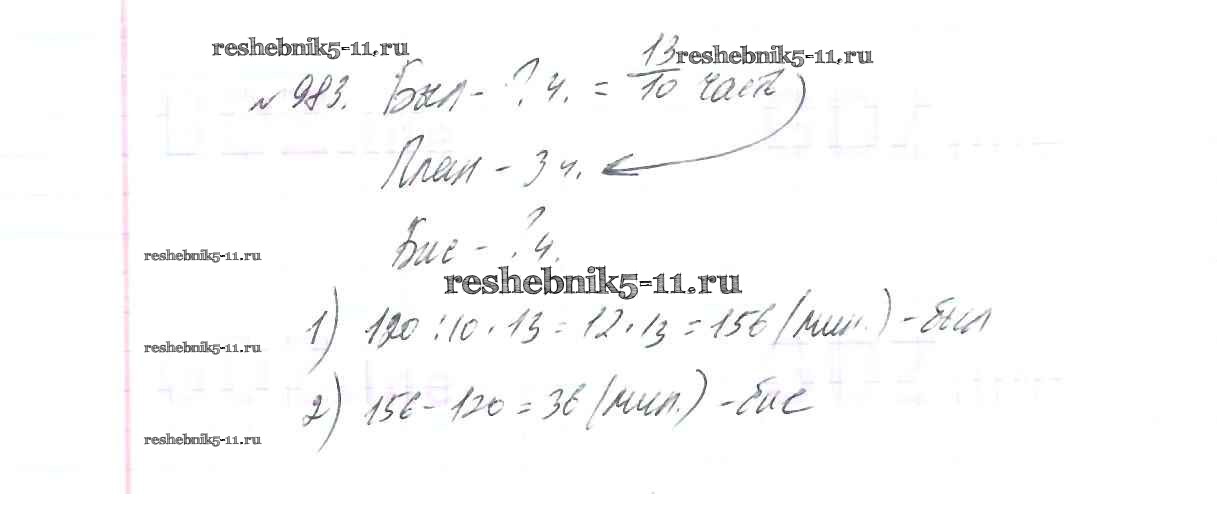 Готовая домашняя работа с ответами по Математике за 5 класс Виленкин, Жохов, Чесноков, Шварцбурд Учебник Мнемозина 2013 ФГОС - Глава 2. Дробные числа (упражнения с 850 по 1849) 983