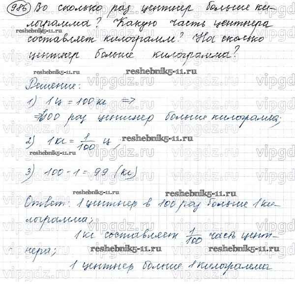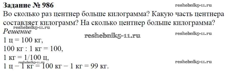 Готовая домашняя работа с ответами по Математике за 5 класс Виленкин, Жохов, Чесноков, Шварцбурд Учебник Мнемозина 2013 ФГОС - Глава 2. Дробные числа (упражнения с 850 по 1849) 986