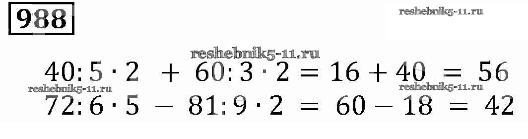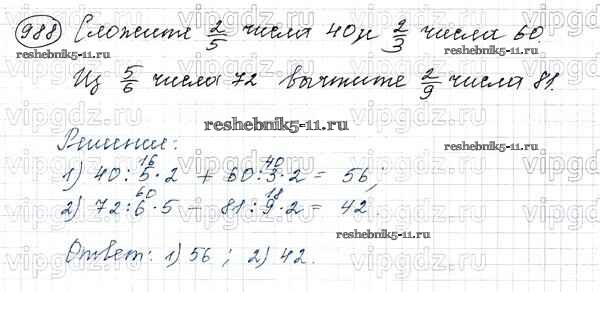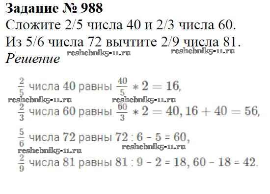 Готовая домашняя работа с ответами по Математике за 5 класс Виленкин, Жохов, Чесноков, Шварцбурд Учебник Мнемозина 2013 ФГОС - Глава 2. Дробные числа (упражнения с 850 по 1849) 988