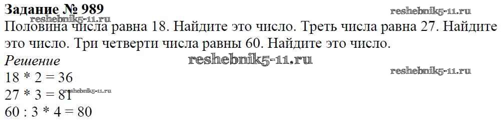 Готовая домашняя работа с ответами по Математике за 5 класс Виленкин, Жохов, Чесноков, Шварцбурд Учебник Мнемозина 2013 ФГОС - Глава 2. Дробные числа (упражнения с 850 по 1849) 989