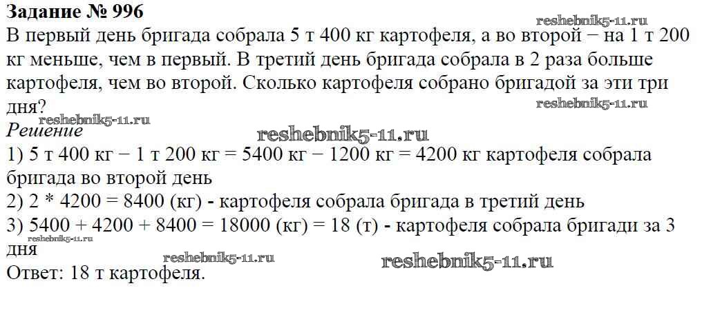 Готовая домашняя работа с ответами по Математике за 5 класс Виленкин, Жохов, Чесноков, Шварцбурд Учебник Мнемозина 2013 ФГОС - Глава 2. Дробные числа (упражнения с 850 по 1849) 996